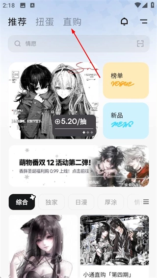 在萌物番的首页,点击顶部导航栏里的直购选项,就能进入直购商品的列表页面啦。