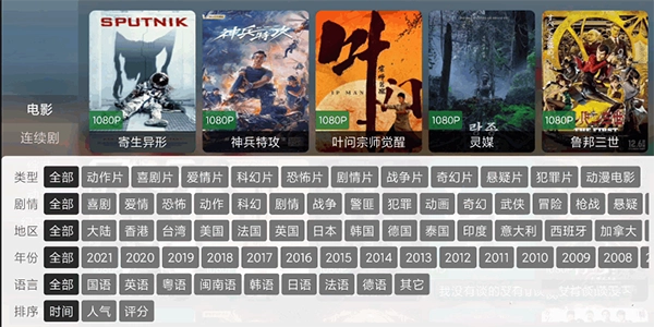 可以按时间、类型、剧情等刷选电影
