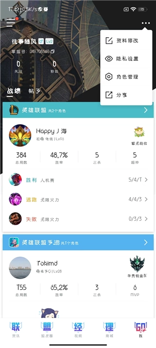3、全新个人信息主页,设置个性化头像和签名,做个真英雄!随时了解自己或他人的战绩情况。