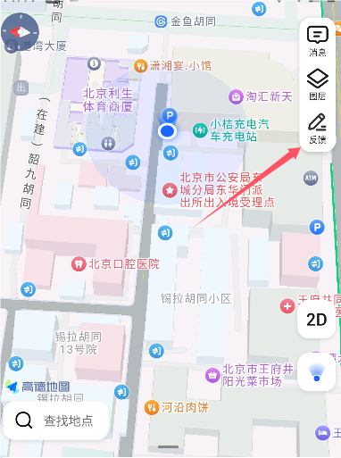 1. 打开高德地图后,点击地图下方位置的圆点,切换至2D导航视角。