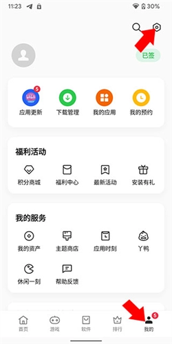 点击右下角的“我的”,进入对应的页面后,再点击右上角的设置按钮