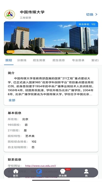 在院校板块,你可以自由在线查找并阅览院校的详细信息,了解招生情况和录取分数。