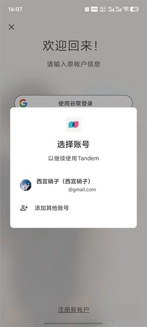 4、完成谷歌账号的授权流程后,自动登录进入Tandem应用主界面。
