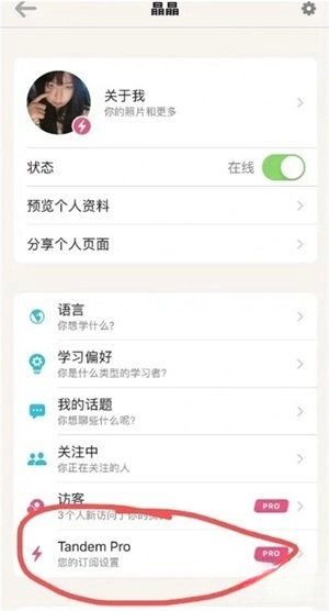 1、首先进入tandem我的界面,点击下方的tandem Pro
