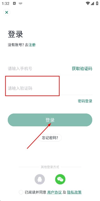 3、在验证码输入框内填入验证码,点击登录按钮以完成账号登录流程。