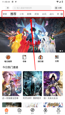 1、打开漫漫看,查看题材选择喜欢的漫画资源。