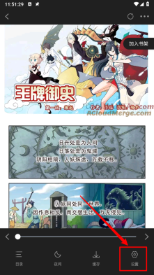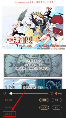 在漫画阅读界面轻点中间区域唤出菜单,接着点击“设置”选项。
