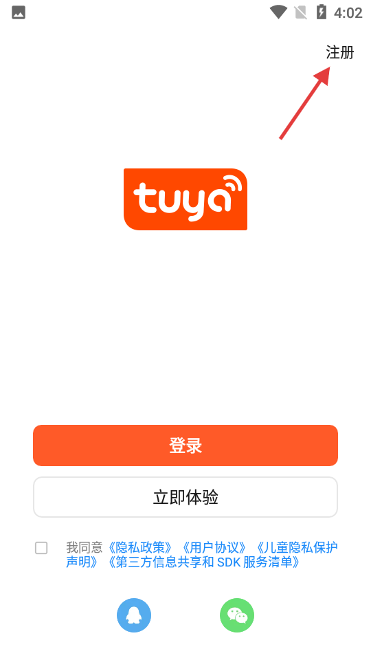 1. 于登录页面,点击右上角的【注册】按钮,即可进入注册页面。