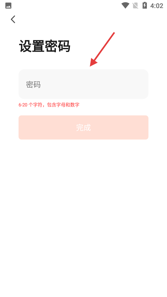 4、请设置长度在6至20个字符之间(字符包含字母与数字)的密码,随后点击【完成】按钮,即可完成注册操作。