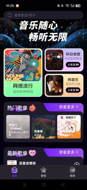 丰富的音乐类型覆盖:波波畅听涵盖"流行、网红、电音、古风、动漫、民谣等歌曲应有尽有"他们不仅提供热门歌曲,还有各种风格的高质量音乐,满足不同用户的听歌需求。