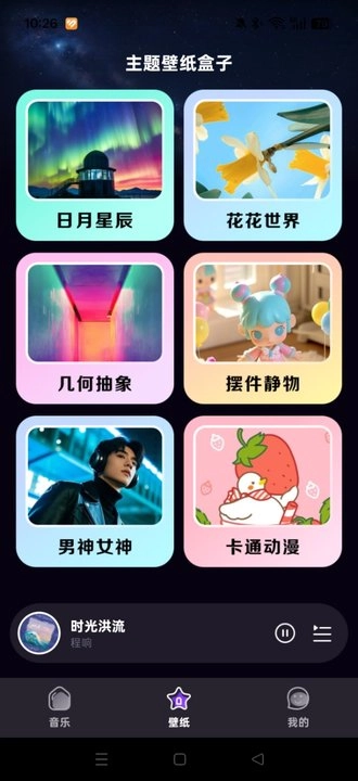 1、波波畅听除了有歌曲播放以外,还为大家提供了许多精美的壁纸,点击应用壁纸界面,去筛选自己喜欢的主题壁纸风格。