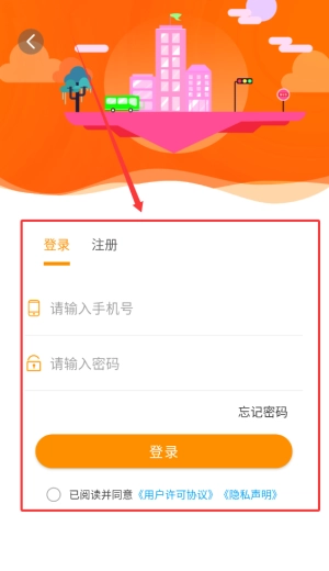 1、注册与登录:首次使用需郴州公交通App,点击“登录/注册”中的“注册”,输入手机号并获取验证码,填写密码后完成注册。已注册用户直接输入手机号、密码,阅读并同意《用户许可协议》《隐私声明》后登录。