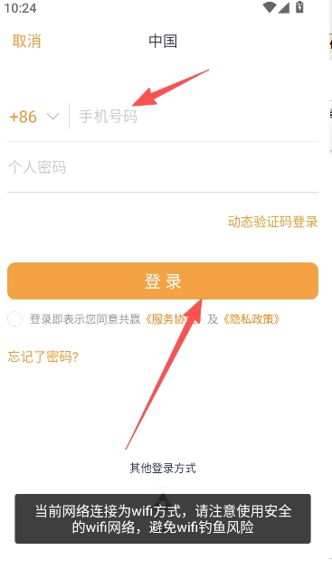 2、以手机号码动态验证码的方式登录进入。