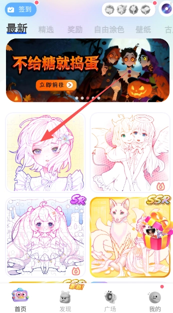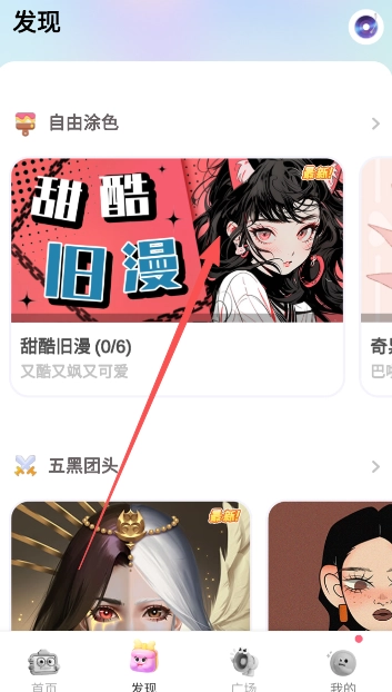 2、发现页,为大家提供热门人气动漫角色的涂色内容,你可以试着从作者的视角参与进来,解锁不同角色的绘画技巧与操作方法,用色彩展现你的创意。