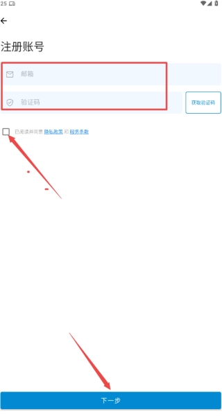 4、填写邮箱与验证码后点击下一步,接着设置密码,即可完成注册并成功登录。