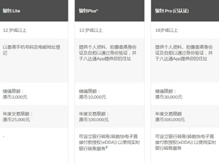 八达通银包设有Lite、Plus和Pro(已认证)三个等级,其中Plus和Pro等级的认证需持有香港身份证方可进行。