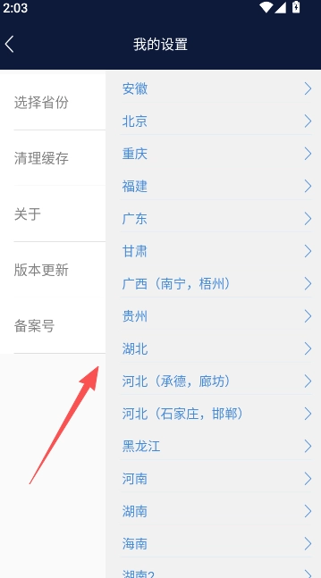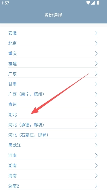 1、打开所的软件以后进入,点击选择所在省份开始学习。