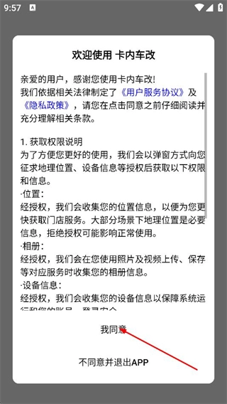 1、阅读用户服务协议及《隐私政策后,点击弹窗中的我同意。