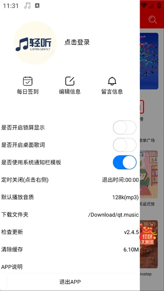 如果需要听无损音质,可以在设置里面修改默认播放音质,里面提供了三种音质,可根据需求自行选择。另外,轻听音乐还了强大的MV功能,让你边看边听。