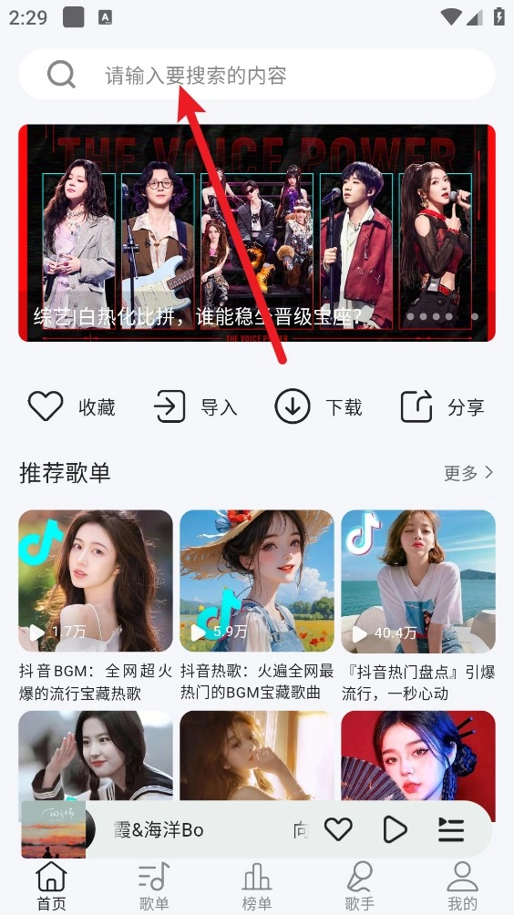 1、首页点击“导入”选项,可将其他平台的歌单快速导入到当下音乐中