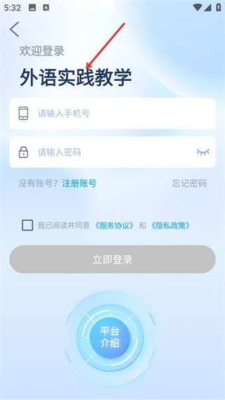 1、进入平台先看到外语实践教学的登录界面,这里用户们需要用户账号的手机号码和密码,如果之前没有使用过的请先注册。