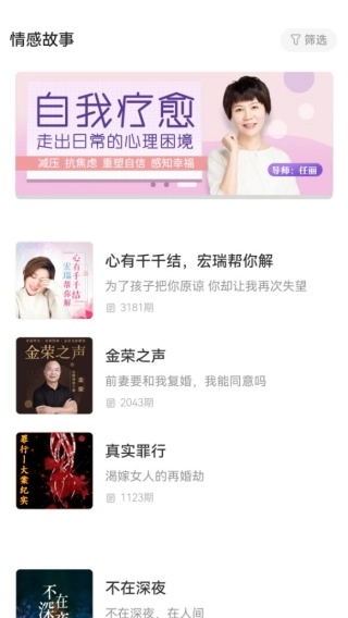 1、进入到平台首页,有情感故事资源提供,直接点击就可以进入聆听。
