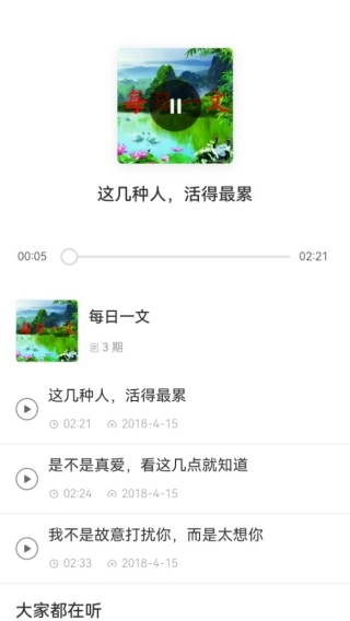 2、大家都在听的内容详细呈现,让每个人自由方便去选择资源。