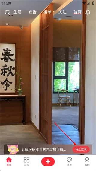 1、进入天街喵后,点击马上登录按钮,可进入登录页面。