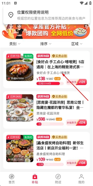 1、在首页点击底部的补贴选项,进入补贴商品列表页面。