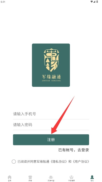 1、在注册界面输入手机号和登录密码,勾选同意相关协议后点击注册创建账号。