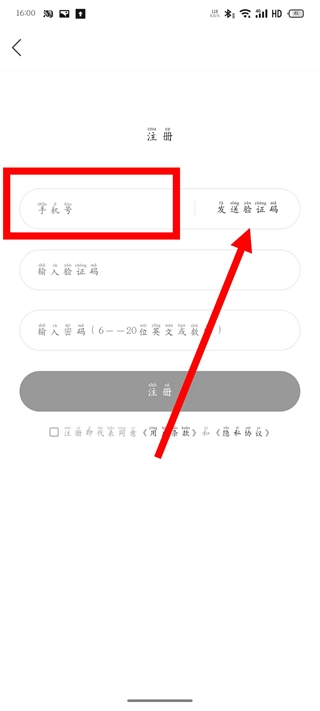 输入验证码,设置密码,勾选协议后,点击注册按钮,即可完成注册操作。