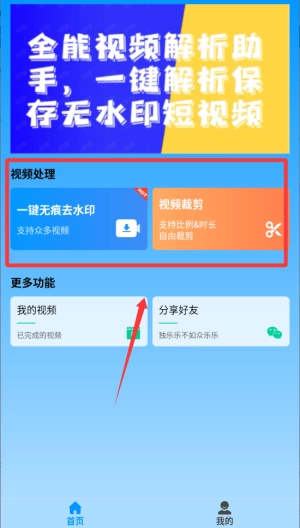进入主页选择视频处理按钮选择功能。