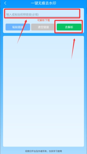 一键去除水印:支持用户上传视频或粘贴链接,智能识别并清除视频中的平台水印、标识或字幕等元素。