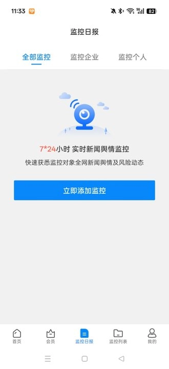 1、天寻舆情监测服务平台的企业添加操作,请在舆情日报栏目,点击立即添加监控开始操作。
