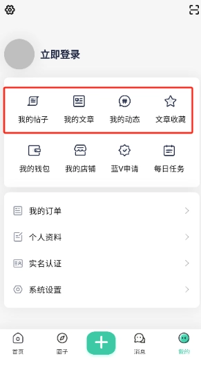 点击"+"号可以发布帖子或者文章。