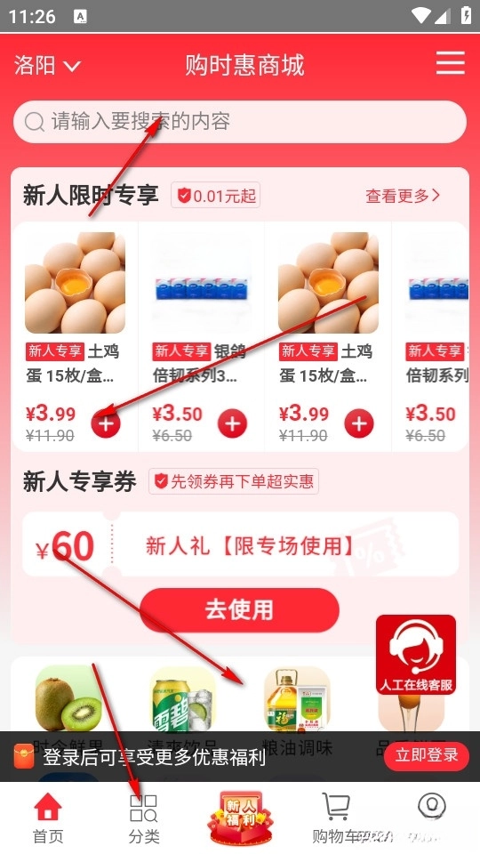 购时惠商城是专门为移动端与用户设计与开发的一款满足洛阳市民众上线购物需求的软件,一般又称为购时惠,在这里广大市民朋友们可以浏览商品陈列、进行各种购物、对订单进行查询、对商品进行评价,还能够在这里及时发现对自己有利的优惠信息。为了吸引更多人的聚集,软件对待新人也是非常好的,新人可以在软件上享受到最高的福利,更有一折商品等你来拿,这么方便、实惠的软件。