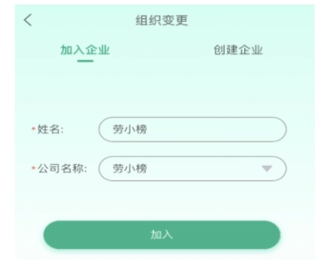 2.加入企业:填写姓名,选填已经创建的公司,进行加入企业。
