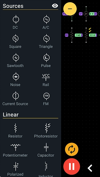 然后挑选电路组件来添加,添加过程中右侧会实时开展电路模拟