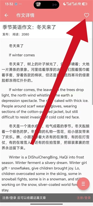 4、在作文详情页可以阅读完整的作文内容,还能进行收藏等操作。