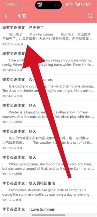 3、在季节主题的作文列表中,选择想要查看的具体作文,点击进入作文详情页。