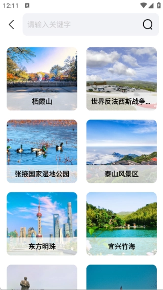 2、在搜索页面中输入关键字即可查找到对应的景点,然后进行查看了解;