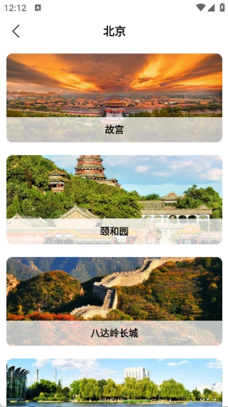 4、点击北京即可了解北京著名景点的信息,主要包括故宫、颐和园、八达岭长期城等。