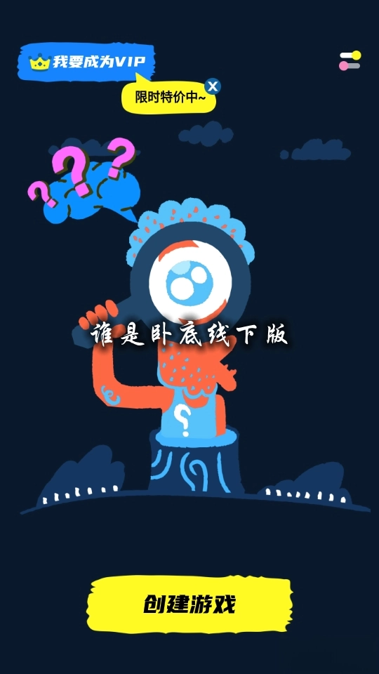 聚会玩团队精心打造的联网游戏,配备超新潮的卧底词库,带来流畅极速的游戏体验。不管是朋友相聚欢乐时刻,还是宅家独处休闲时光;是午间短暂的放松间隙,亦或是旅行途中的无聊时刻,都是利用碎片化时间的绝佳选择!只要网络通畅,单人或多人模式都能让你尽情享受游戏乐趣~