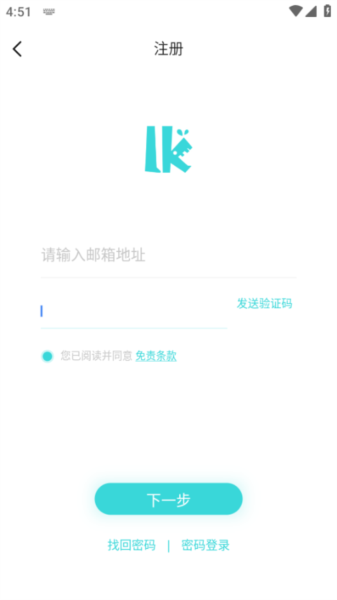 4、输入邮箱地址,点击发送验证码,然后登录这个邮箱的官网接收验证码。填完验证码点击下一步进行账号密码设置即可注册完成。