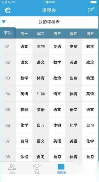 5、点击进入课程表,即可看到最新的课程表,你还可以添加或删除哦。