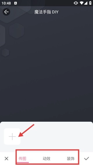 进入魔法手指DIY后,切换至【传图】栏目,点击【+】上传图片即可开始编辑。
