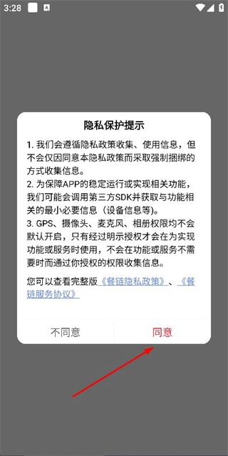 1、在用户协议隐私政策弹窗中点击同意按钮,进入登录页面。