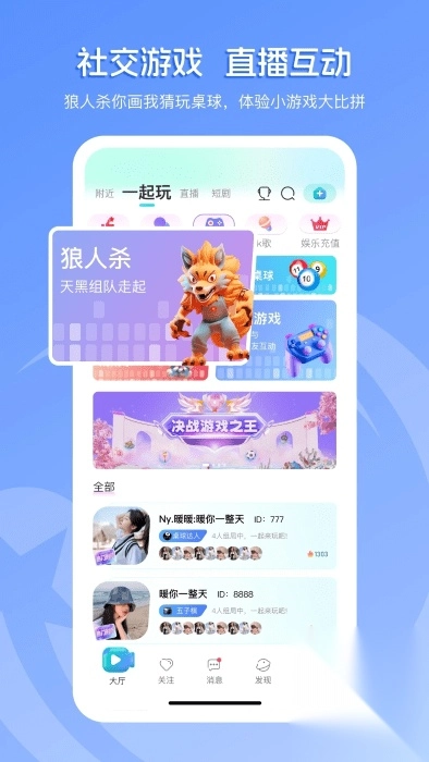 丰富多样的小游戏:平台提供多个趣味小游戏,用户能够在直播间内和其他观众一同参与游玩,为直播增添更多欢乐氛围。