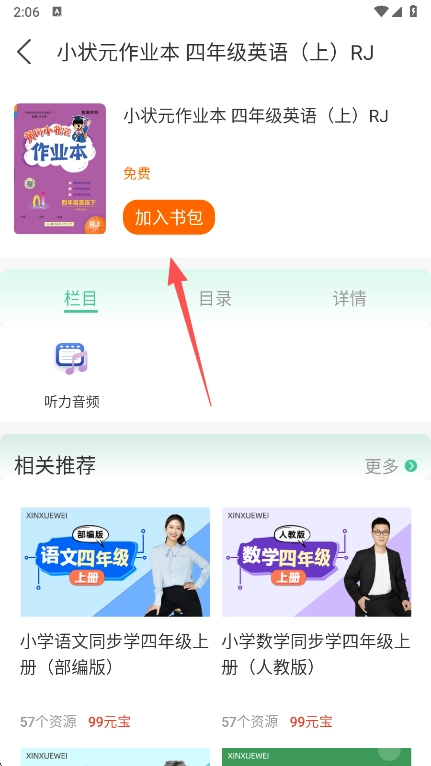 2、直接进入本书听力资源页面,正版图书的用户,只需点击一下栏目听力音频