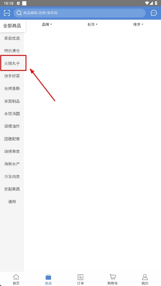 2、在分类页面点击选择【火锅丸子】分类标签,即可查看对应的商品列表。